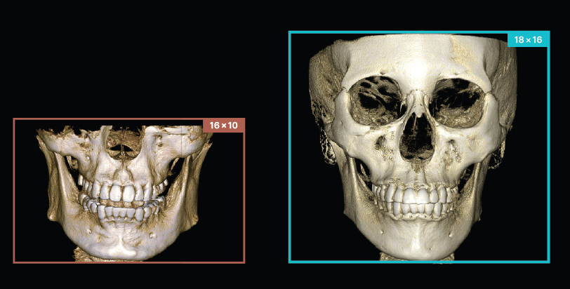 RAYPreMiere puede capturar una región completa de la anatomía con facilidad y precisión. Su notable capacidad para capturar Nasion y Glabella, desde la barbilla hasta la frente, todo en un solo escaneo de 16 cm de alto, es realmente impresionante.